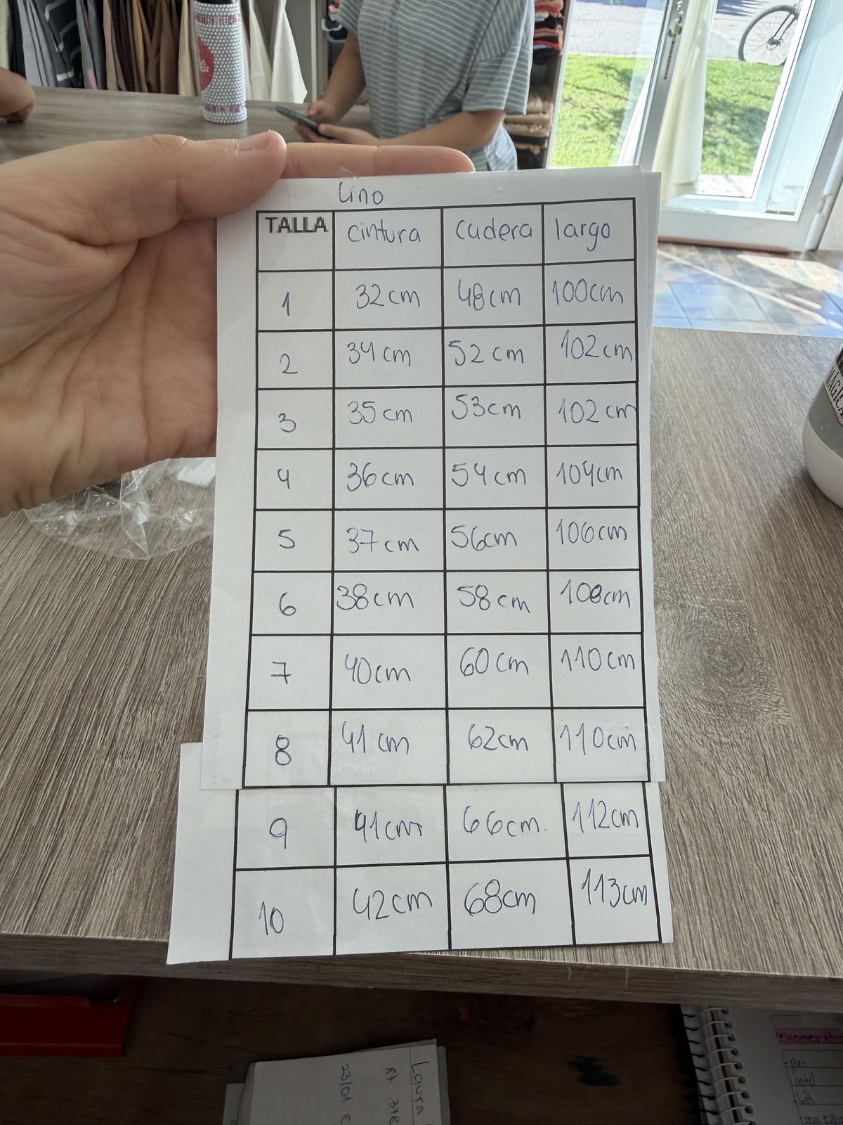 tabla de talle en la última foto