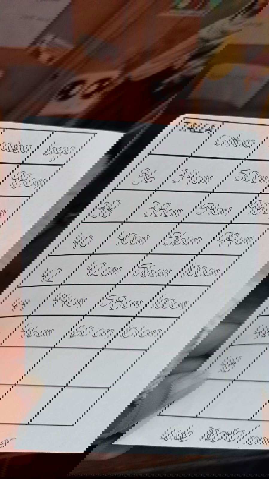 Tabla de talle en la última foto
